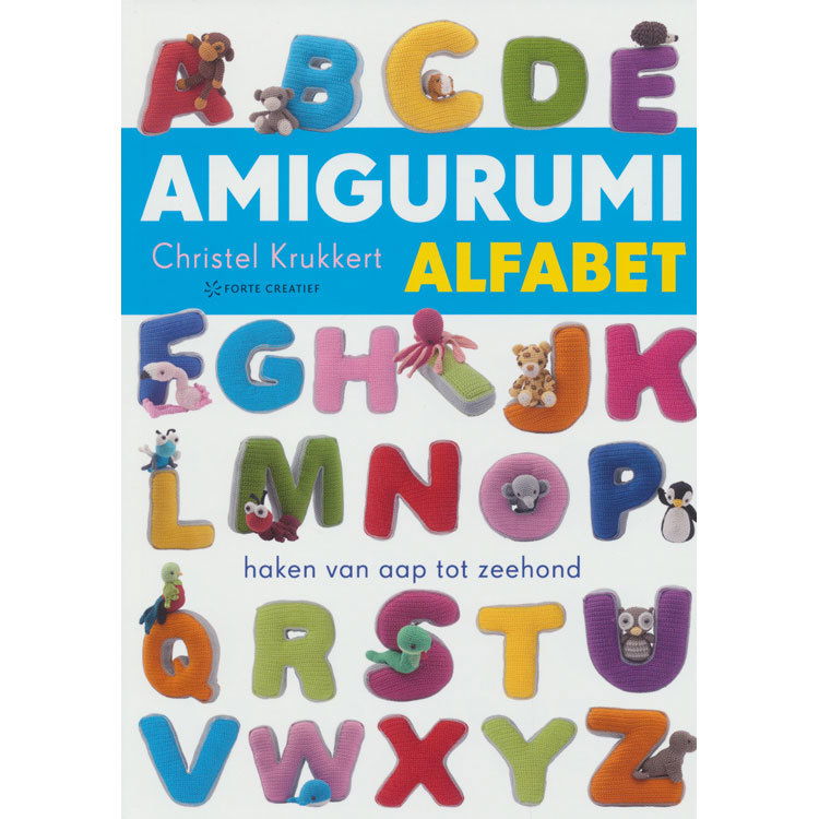 Het hele alfabet met daarbij een super schattig, stoer, lieve diertje staan in het haakboek amigurumi alfabet van Cristel Krukkert