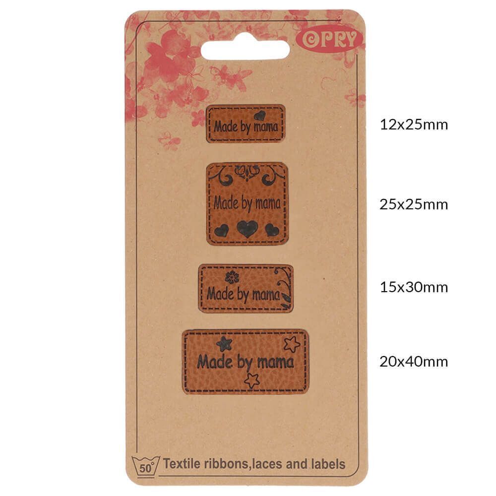 Patronen Applicatie skai-leren label Made by Mama (4 stuks)
