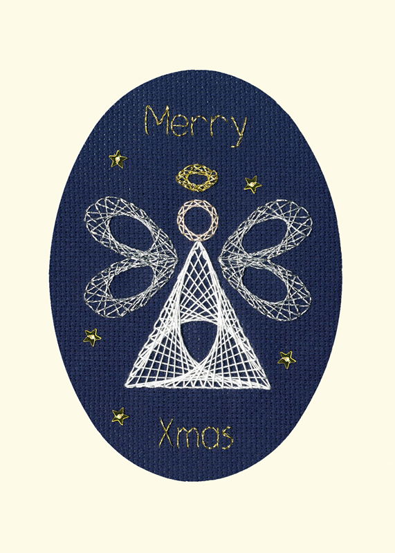 Borduurpakket kerst engel, compleet met patroon, stof, 3-delige passe-partoutkaart en benodigde garens