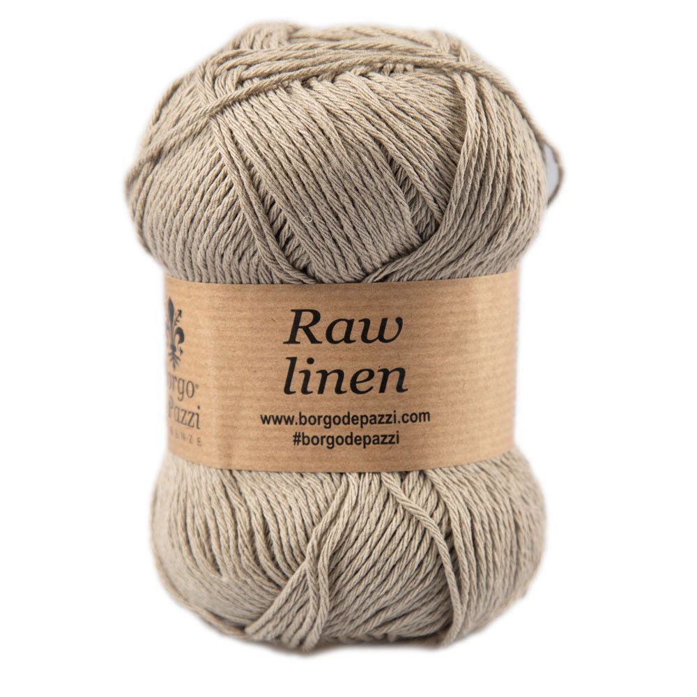 Raw Linen van Borgo de Pazzi is een soepele, maar ruige draad van 100 % linnen. Het garen is zeer geschikt voor het maken van decoratie's