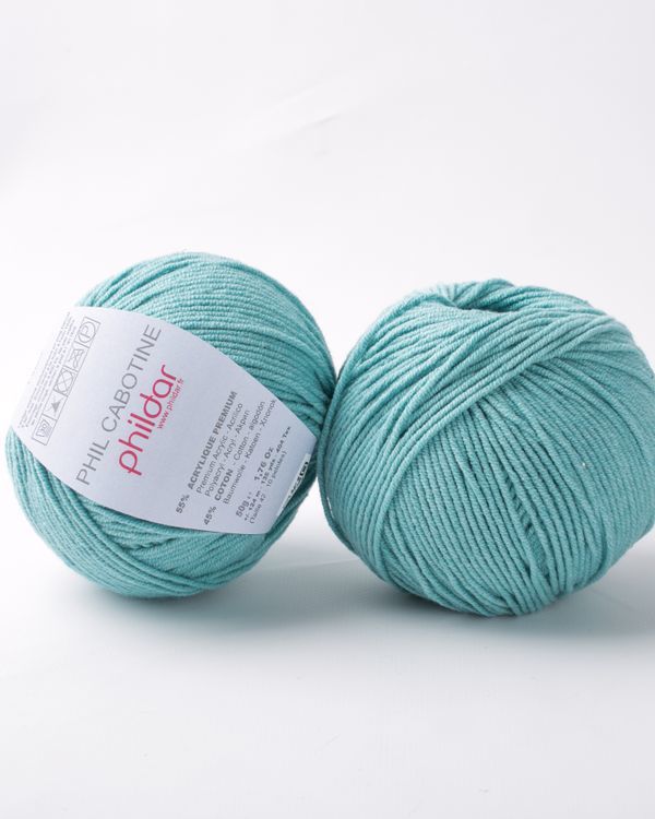 Cabotine van phildar is gemaakt van licht gebleekt katoen, dit geeft het garen een natuurlijke uitstraling. Daarnaast is voor meer elastisiteit acryl in de draad verwerkt. Het garen is zacht, stevig en geschikt om mee te haken en te breien. Cabotine is geschikt voor zowel zomer- als winterkleding, er staan veel patronen in de boeken van Phildar, een aantal patronen worden gratis bij het garen meegeleverd.