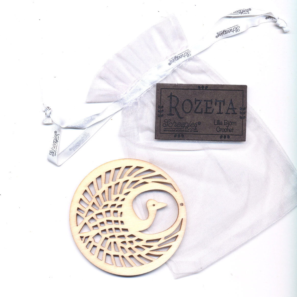 Scheepjes Call 2019 Rozetta Labels kraanvogel hout en leer, naald in luxe zakje