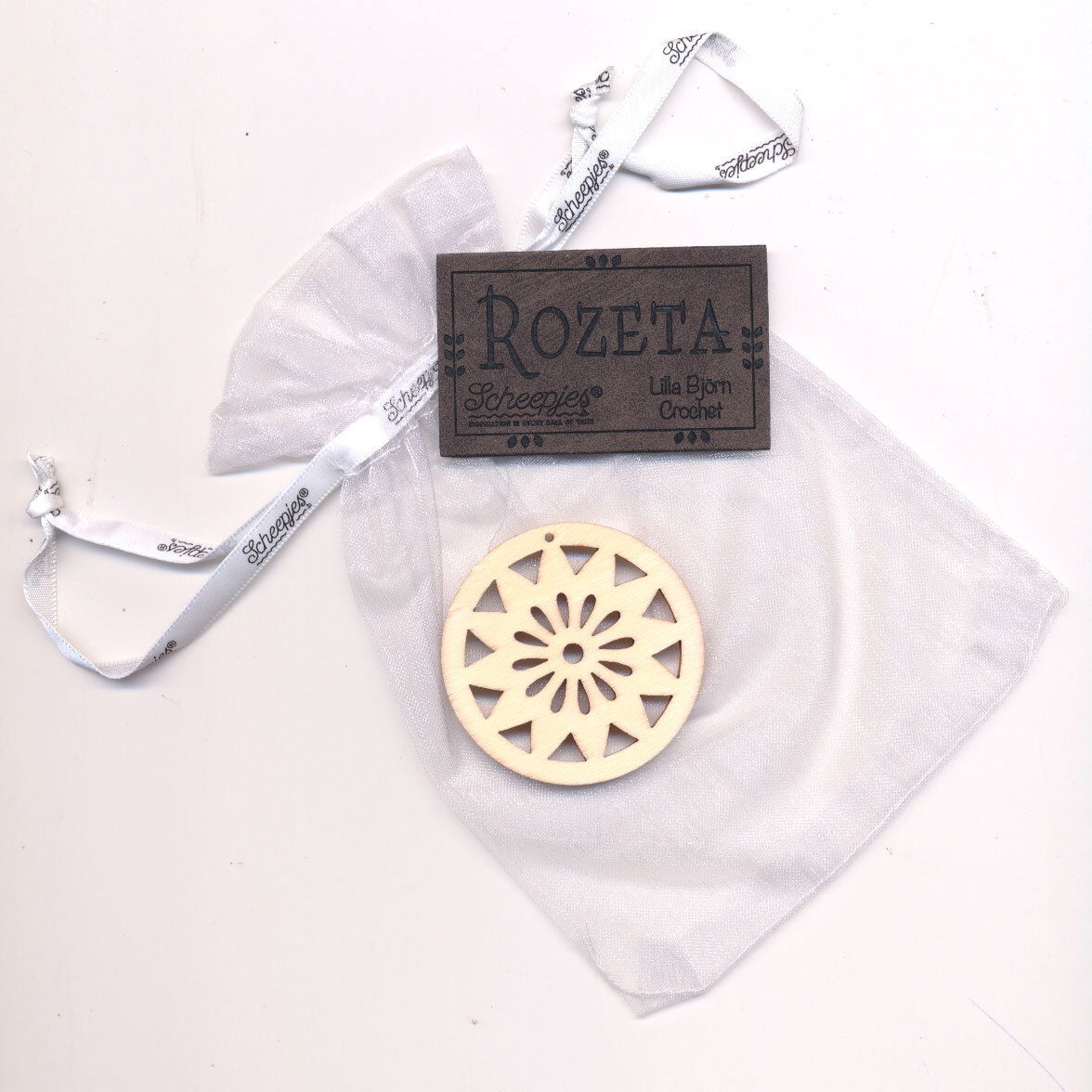 Scheepjes Call 2019 Rozetta Labels bloem hout en leer, naald in luxe zakje