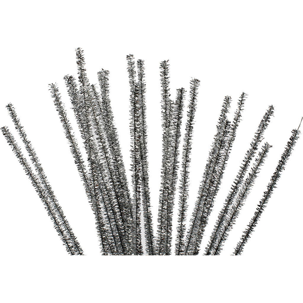 Chenille 6 mm - 30 cm glitter zilver (24 stuks) Niet meer leverbaar