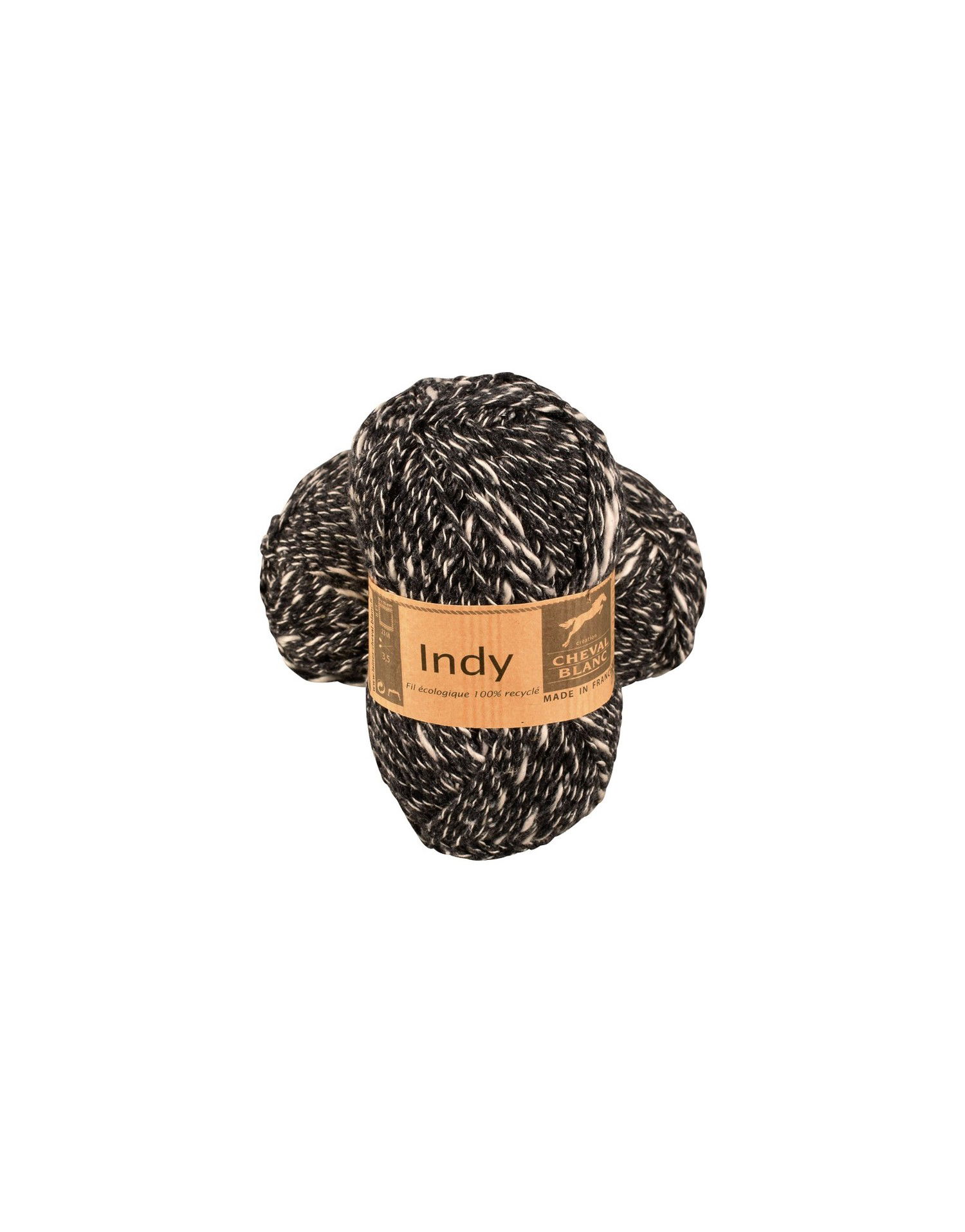 Indy van Cheval Blanc is een gerecycleerd garen met een natuurlijke uitstraling. De draad heeft een ruige winding wat breisels een levendige en authentieke uitstraling geeft.