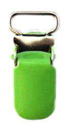 Handige clip om met koord of lint, babyspeeltjes of speen vast te maken aan buggy, jasje ed. breedte lus ca 8 mm