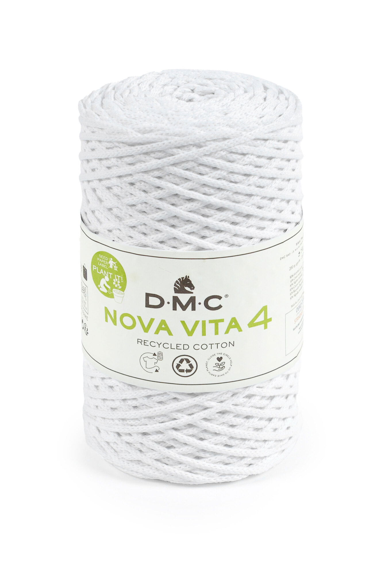 Het nieuwe garen Nova Vita nr. 4 van DMC is net als het dikkere Nova Vita nr. 12 gemaakt van gerecycled textiel. Dat is goed voor het milieu en geeft u bovendien de gelegenheid om nog meer leuke woon- en modeaccessoires te maken. Nova Vita wordt gemaakt van textielafval dat gemalen, geverfd en opnieuw wordt gesponnen. Daarnaast heeft het garen een gerecyclede verpakking en stopt u de banderol in de grond in plaats van die weg te gooien – de banderol is namelijk zaadpapier (of groeipapier) waarmee plantjes en dus nieuw leven kunnen worden gekweekt. Het koordgaren heeft een doorsnee van 2.50-3.00mm en bestaat uit een geweven omhulsel rond een dunnere draad die het zijn stevigheid geeft. Het is bij uitstek geschikt voor het haken, breien of macrameeën van woon- en modeaccessoires, zoals tassen, placemats, kussens, lampenkappen of plantenhangers. Verkrijgbaar in 12 unikleuren en 6 multicolour tinten. Nova Vita nr. 4 is samengesteld uit 80% gerecycled katoen en 20% polyester en heeft het OEKO-TEX® Standard 100 keurmerk. Wasbaar tot 30?C. De aanbevolen naalddikte voor breien is 5.00mm en voor haken 4.00mm. Een bol Nova Vita nr. 4 weegt 250 gram en heeft een looplengte van 200 meter. Geleverd per 4 bollen.