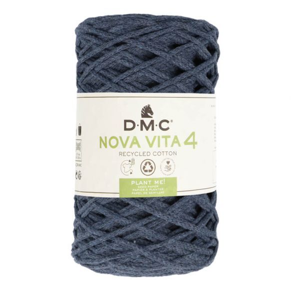 Het nieuwe garen Nova Vita nr. 4 van DMC is net als het dikkere Nova Vita nr. 12 gemaakt van gerecycled textiel. Dat is goed voor het milieu en geeft u bovendien de gelegenheid om nog meer leuke woon- en modeaccessoires te maken. Nova Vita wordt gemaakt van textielafval dat gemalen, geverfd en opnieuw wordt gesponnen. Daarnaast heeft het garen een gerecyclede verpakking en stopt u de banderol in de grond in plaats van die weg te gooien – de banderol is namelijk zaadpapier (of groeipapier) waarmee plantjes en dus nieuw leven kunnen worden gekweekt. Het koordgaren heeft een doorsnee van 2.50-3.00mm en bestaat uit een geweven omhulsel rond een dunnere draad die het zijn stevigheid geeft. Het is bij uitstek geschikt voor het haken, breien of macrameeën van woon- en modeaccessoires, zoals tassen, placemats, kussens, lampenkappen of plantenhangers. Verkrijgbaar in 12 unikleuren en 6 multicolour tinten. Nova Vita nr. 4 is samengesteld uit 80% gerecycled katoen en 20% polyester en heeft het OEKO-TEX® Standard 100 keurmerk. Wasbaar tot 30?C. De aanbevolen naalddikte voor breien is 5.00mm en voor haken 4.00mm. Een bol Nova Vita nr. 4 weegt 250 gram en heeft een looplengte van 200 meter. Geleverd per 4 bollen.