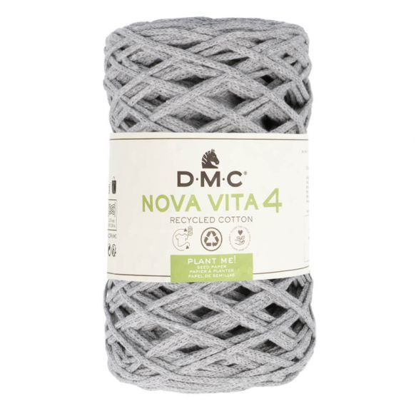 Het nieuwe garen Nova Vita nr. 4 van DMC is net als het dikkere Nova Vita nr. 12 gemaakt van gerecycled textiel. Dat is goed voor het milieu en geeft u bovendien de gelegenheid om nog meer leuke woon- en modeaccessoires te maken. Nova Vita wordt gemaakt van textielafval dat gemalen, geverfd en opnieuw wordt gesponnen. Daarnaast heeft het garen een gerecyclede verpakking en stopt u de banderol in de grond in plaats van die weg te gooien – de banderol is namelijk zaadpapier (of groeipapier) waarmee plantjes en dus nieuw leven kunnen worden gekweekt. Het koordgaren heeft een doorsnee van 2.50-3.00mm en bestaat uit een geweven omhulsel rond een dunnere draad die het zijn stevigheid geeft. Het is bij uitstek geschikt voor het haken, breien of macrameeën van woon- en modeaccessoires, zoals tassen, placemats, kussens, lampenkappen of plantenhangers. Verkrijgbaar in 12 unikleuren en 6 multicolour tinten. Nova Vita nr. 4 is samengesteld uit 80% gerecycled katoen en 20% polyester en heeft het OEKO-TEX® Standard 100 keurmerk. Wasbaar tot 30?C. De aanbevolen naalddikte voor breien is 5.00mm en voor haken 4.00mm. Een bol Nova Vita nr. 4 weegt 250 gram en heeft een looplengte van 200 meter. Geleverd per 4 bollen.