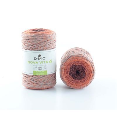 Het nieuwe garen Nova Vita nr. 4 van DMC is net als het dikkere Nova Vita nr. 12 gemaakt van gerecycled textiel. Dat is goed voor het milieu en geeft u bovendien de gelegenheid om nog meer leuke woon- en modeaccessoires te maken. Nova Vita wordt gemaakt van textielafval dat gemalen, geverfd en opnieuw wordt gesponnen. Daarnaast heeft het garen een gerecyclede verpakking en stopt u de banderol in de grond in plaats van die weg te gooien – de banderol is namelijk zaadpapier (of groeipapier) waarmee plantjes en dus nieuw leven kunnen worden gekweekt. Het koordgaren heeft een doorsnee van 2.50-3.00mm en bestaat uit een geweven omhulsel rond een dunnere draad die het zijn stevigheid geeft. Het is bij uitstek geschikt voor het haken, breien of macrameeën van woon- en modeaccessoires, zoals tassen, placemats, kussens, lampenkappen of plantenhangers. Verkrijgbaar in 12 unikleuren en 6 multicolour tinten. Nova Vita nr. 4 is samengesteld uit 80% gerecycled katoen en 20% polyester en heeft het OEKO-TEX® Standard 100 keurmerk. Wasbaar tot 30?C. De aanbevolen naalddikte voor breien is 5.00mm en voor haken 4.00mm. Een bol Nova Vita nr. 4 weegt 250 gram en heeft een looplengte van 200 meter. Geleverd per 4 bollen.