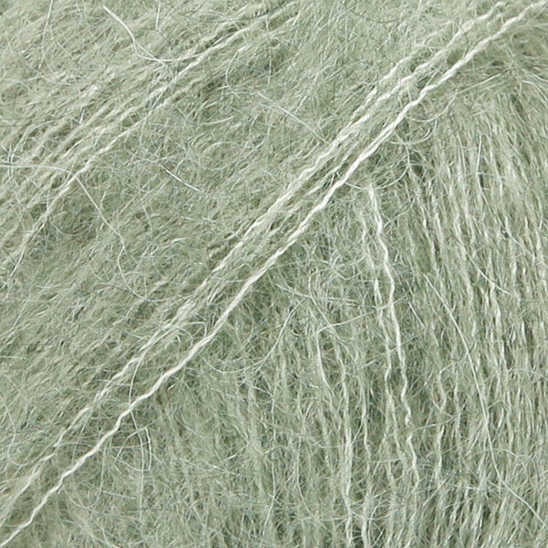 Drops Kid silk 34 saliegroen van garnstudio, is een luxe breigaren met een exclusieve mix van 75% Mohair Super Kid en 25% Zijde. Het breiwol is dun en licht, je kunt modellen breien alleen met Kid Silk of combineren met andere kwaliteiten. Dit garen is perfect voor kleine en fijne modellen zoals shawls, omslagdoeken, bolero’s en topjes. Probeer ook gerust met een dubbele draad te breien. Vervang bijvoorbeeld DROPS Vivaldi door 2 draden Kid Silk!