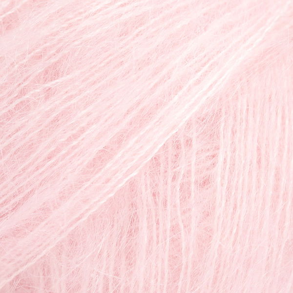 Drops Kid silk 63 poederroze van garnstudio, is een luxe breigaren met een exclusieve mix van 75% Mohair Super Kid en 25% Zijde.