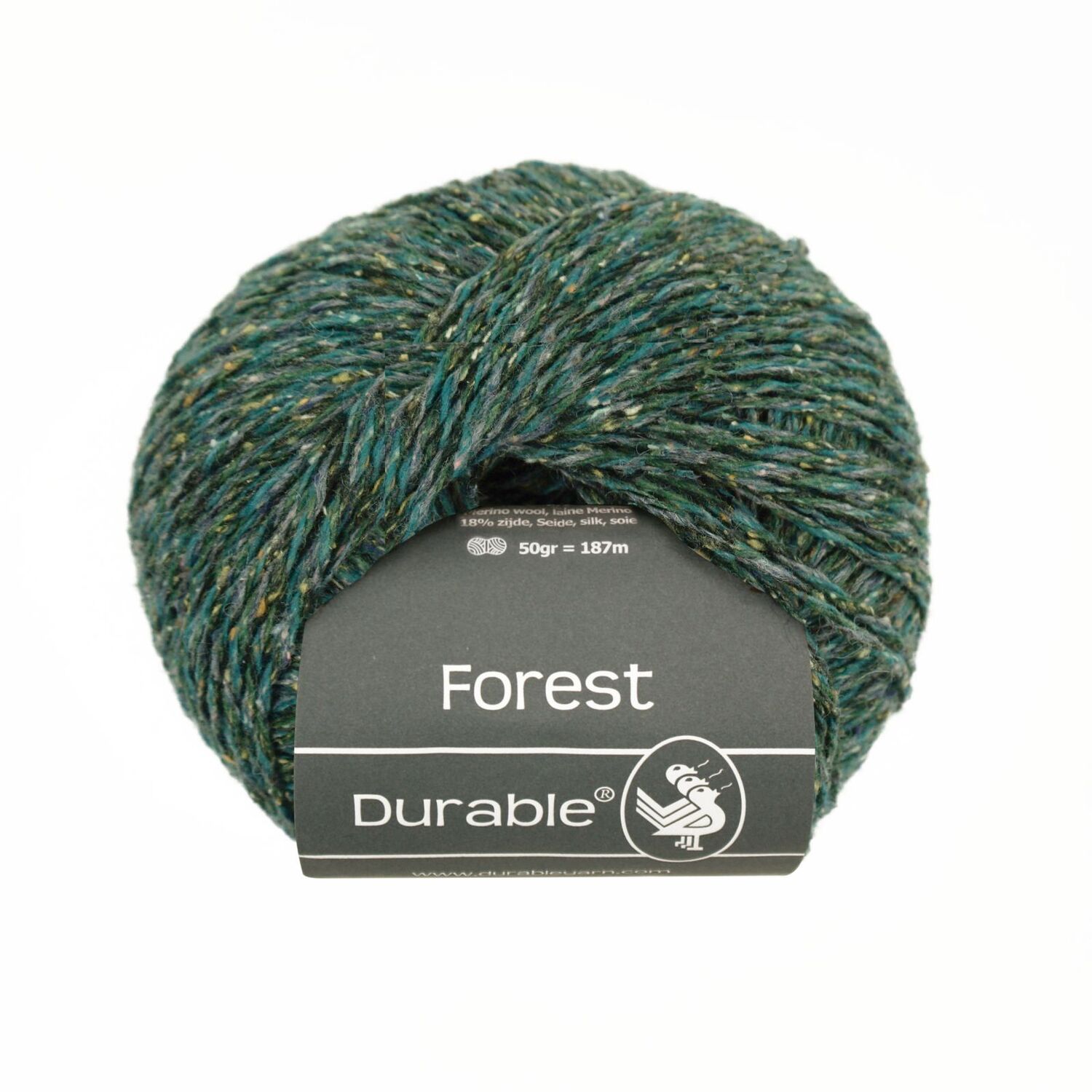 Durable Forest is een gemeleerde draad met zijde, merinowol en acryl. Het garen heeft een stoere uitstraling en is zeer geschikt voor het breien en haken van kleding.
