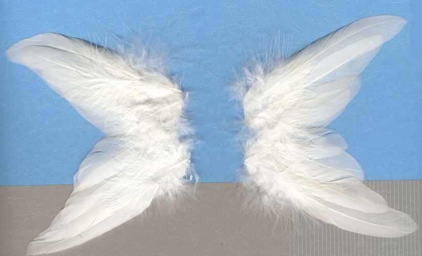 Engelen vleugels van echte veren, aanzetpunt verstevigd met vilt