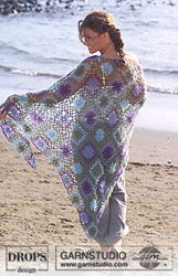 Haakpatroon omslagdoek, bestaat uit 16 makkelijk te haken vierkanten in lossen en vasten. Het garen is dezelfde als van de afbeelding en is een fijne en zachte 58% mohair, 19% wol en 23% polyamide.