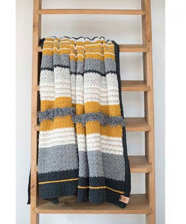 Haakpakket Barceloan trend deken, inhoud: 11 bollen Durable Cosy 2237 charcoal, 4 bollen Durable Cosy 326 ivory, 1 bol Durable Cosy 2182 ocher, 7 bollen Durable cosy fine 326 ivory, 8 bollen Durable Cosy Fine 2235 ash, 5 bollen Durable Double four 2182 Ocher, 5 bollen Durable Forest 4000 en 1 bol Durable Chunky 341 Pebble en natuurlijk het bijbehorende patroon