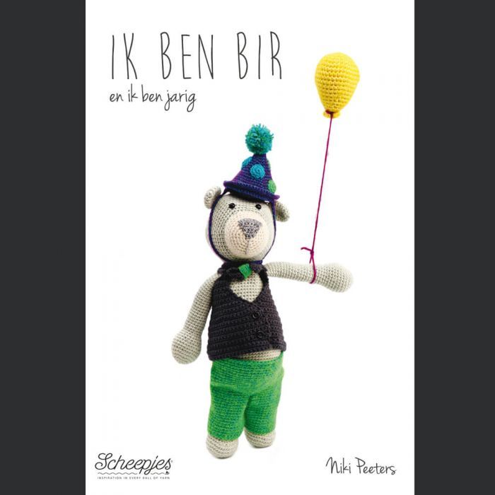 Ik ben Bir en ik ben jarig. Duidelijke haakpatronen voor het haken van een ooievaar, neushoorn, beer en leuke feestelijke accessoires.