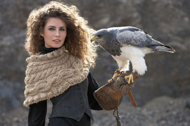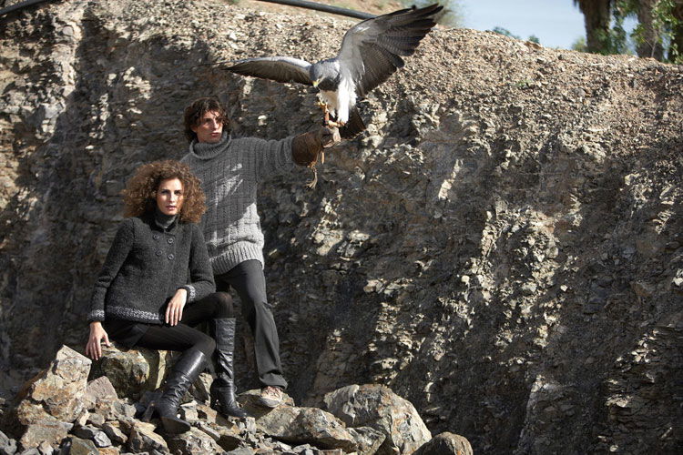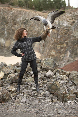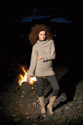 Blad met stoere breipatronen, met oa trui voor hem en haar, vest, schoudercape en sjaal.