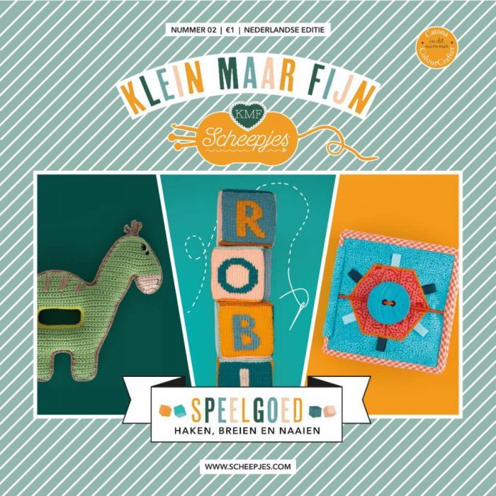 Het eerste patroon is een haakpatroon. Nienke Jongstra ontwierp Mr. Dino, een knuffel die gehaakt wordt met Scheepjes Catona - garen van gemerceriseerd katoen dat zeer geschikt is voor baby's. Deze knuffel draagt je kleintje gemakkelijk met zich mee dankzij de uitsparing in het lijfje. Door een pieper of rammelaar in de knuffel te verwerken, worden de zintuigen extra geprikkeld. Ga je liever breien? Ook dan bevat deze editie een geschikt patroon voor jou. Met de Build Your Name Blocks van Michelle Oonincx brei je van Scheepjes Colour Crafter kleurrijke blokken, waar je vervolgens (aan de hand van diagrammen) letters op maast. Hoe leuk is het om de naam van je kindje op zachte kubussen als decoratie in de kinderkamer te hebben?! Kids zullen urenlang speelplezier beleven met deze kubussen. Een creatief en gepersonaliseerd kraam cadeau dat zeker in goede aarde zal vallen!
