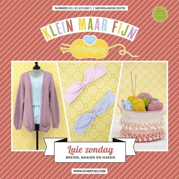 Klein maar fijn 32 Luie zondag is een patronen boekje met 3 patronen: damesvest, haarband en opbergmand.