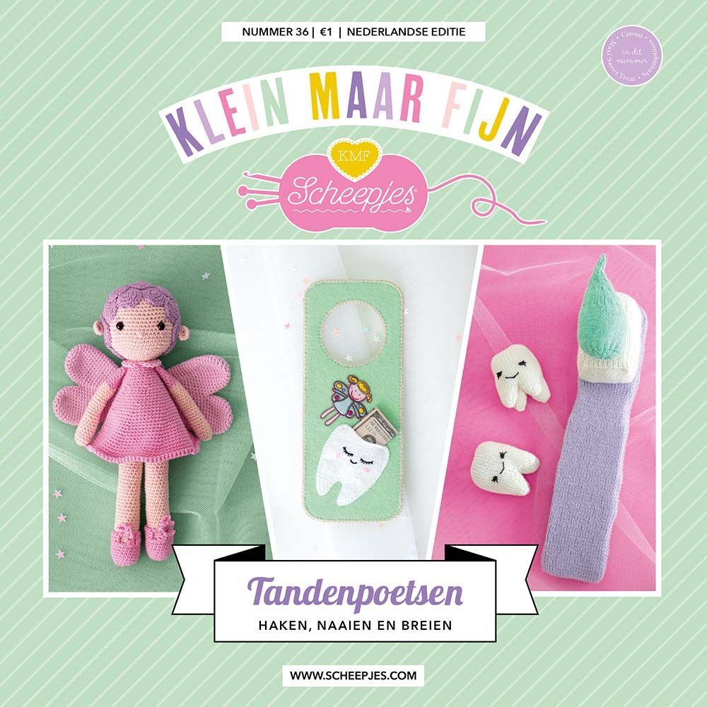 Klein Maar Fijn 36 – Tandenpoetsen met een haakpatroon voor het haken van tanden fee, een hanger voor tand en beloning en breipatroon tandenborstel met tanden.