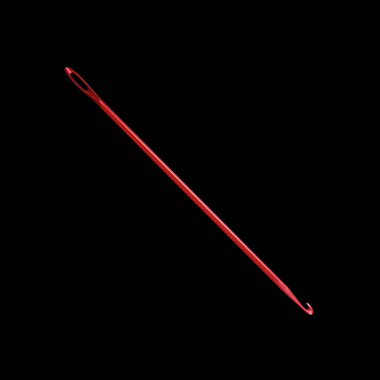 Knookingnaald lijkt heel erg op een gewone haaknaald, met als verschi dat er aan het uiteinde een oog zit. Het oog is voor de hulpdraad, op deze draad worden je steken tijdelijk gezet. Met de Knookingnaald kan iedereen breien.