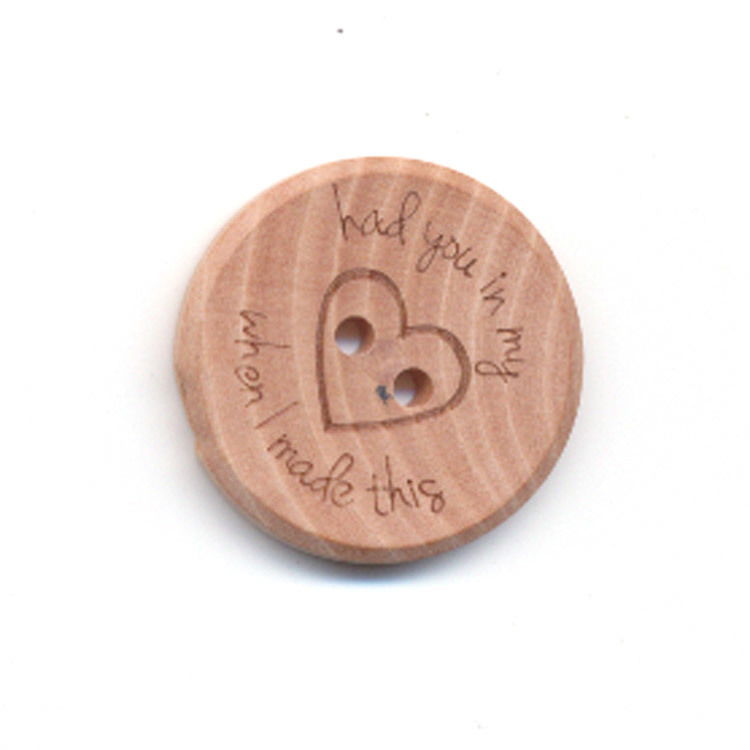 Natuurlijke knoop van licht hout met tekst: had you in my hart when I made this, rond met een doorsnee van 20 mm.