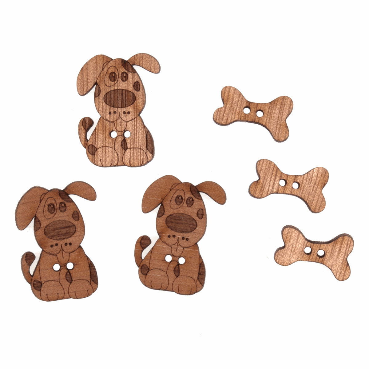 Patronen knoop 25 - 30 mm hond met bot hout (3x2)