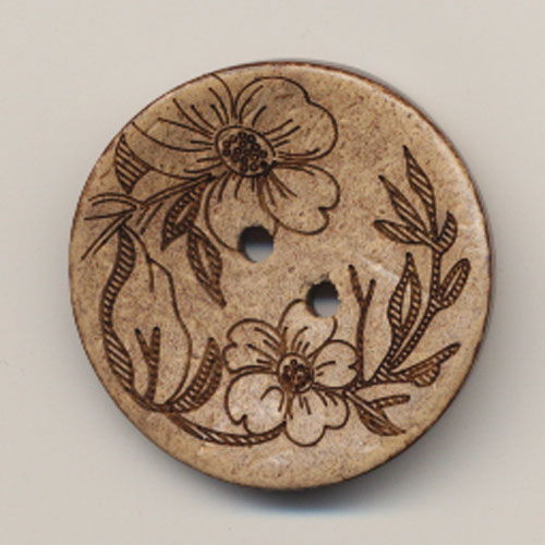 Natuurlijke knoop van kokos met gelaserd bloemmotief