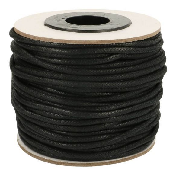 Koord Wax cotton 1 mm - zwart (20 meter)