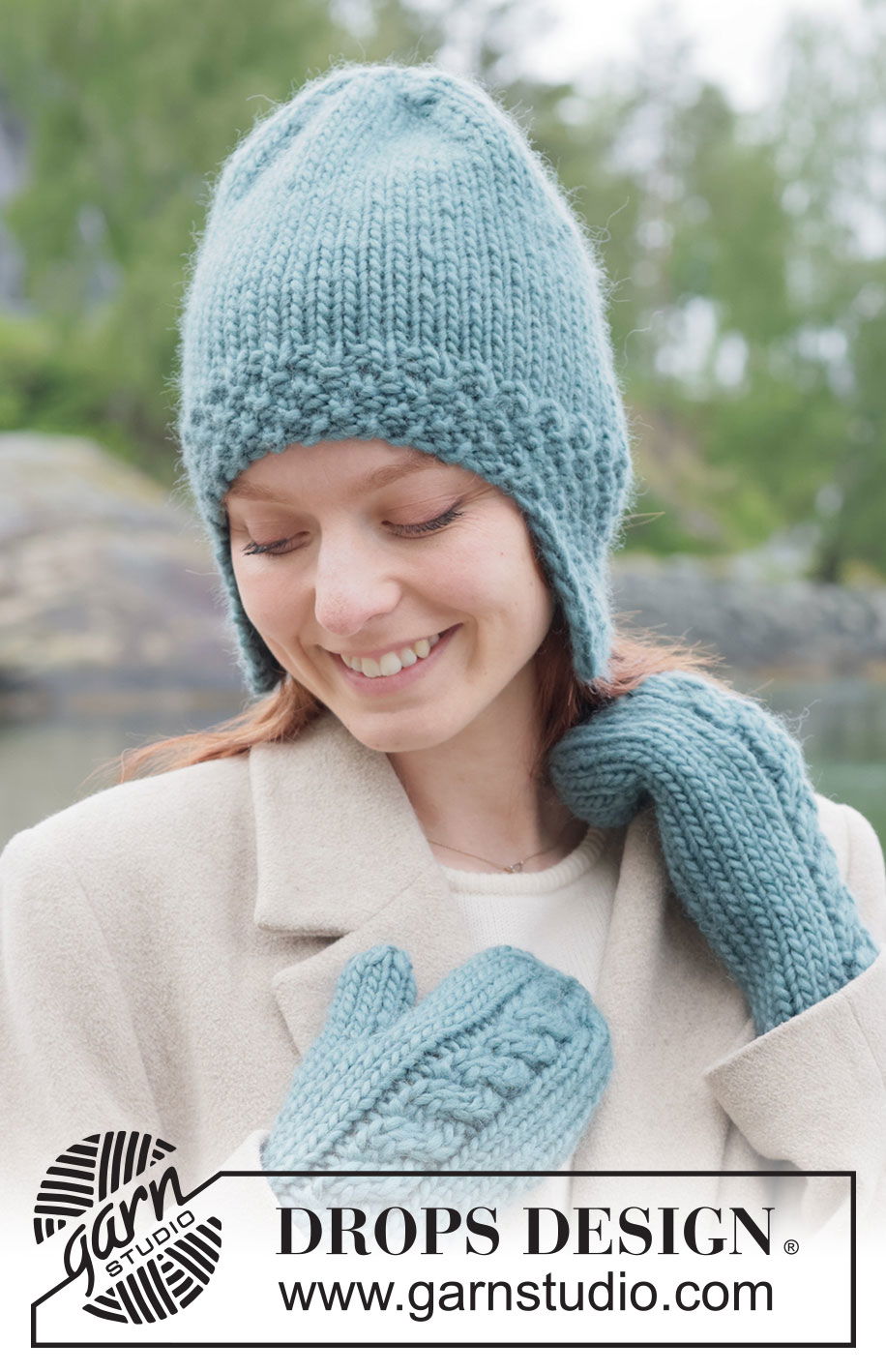 Warme gebreide muts met oorflappen van DROPS Snow gemaakt van Breinaalden zonder knop