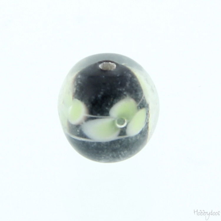 Kraal 15 mm glas - witte kraal met stip 71700 6 stuks (op=op)