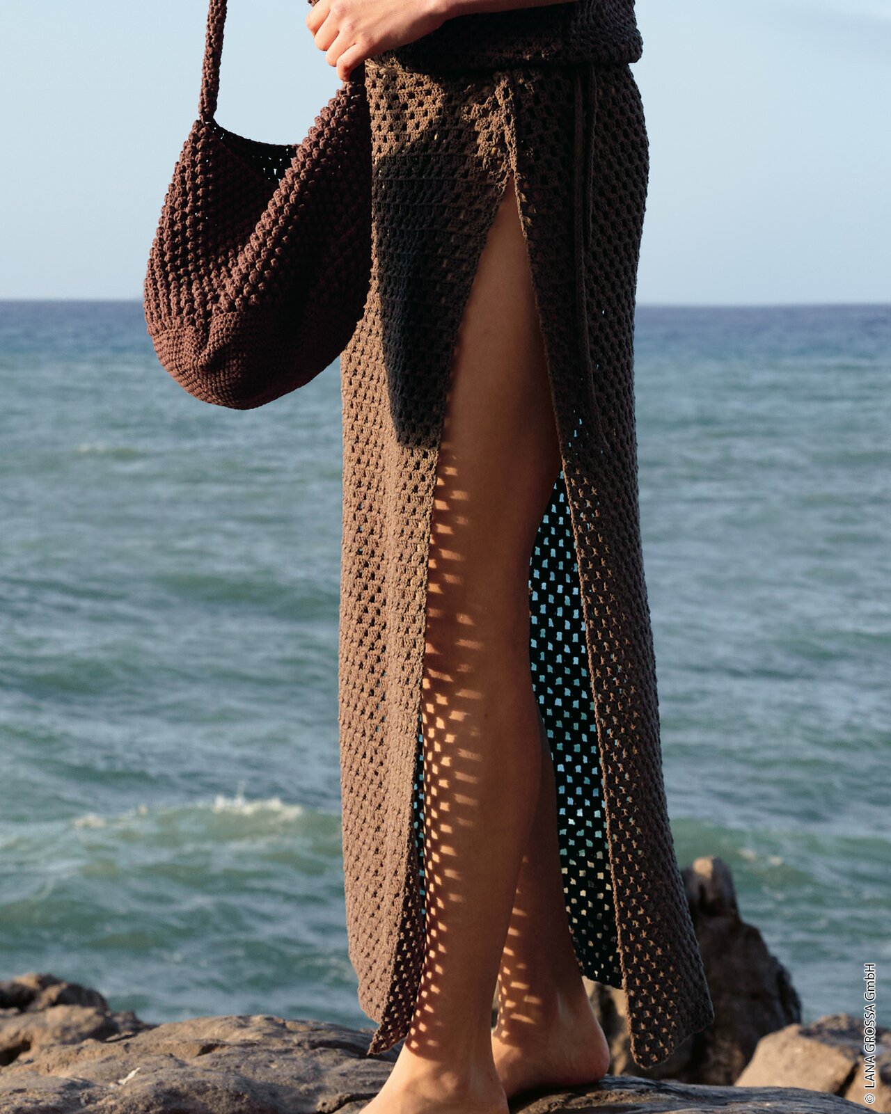 lange rok met hoge split in zijnaad gemaakt van Lana Grossa Gioia