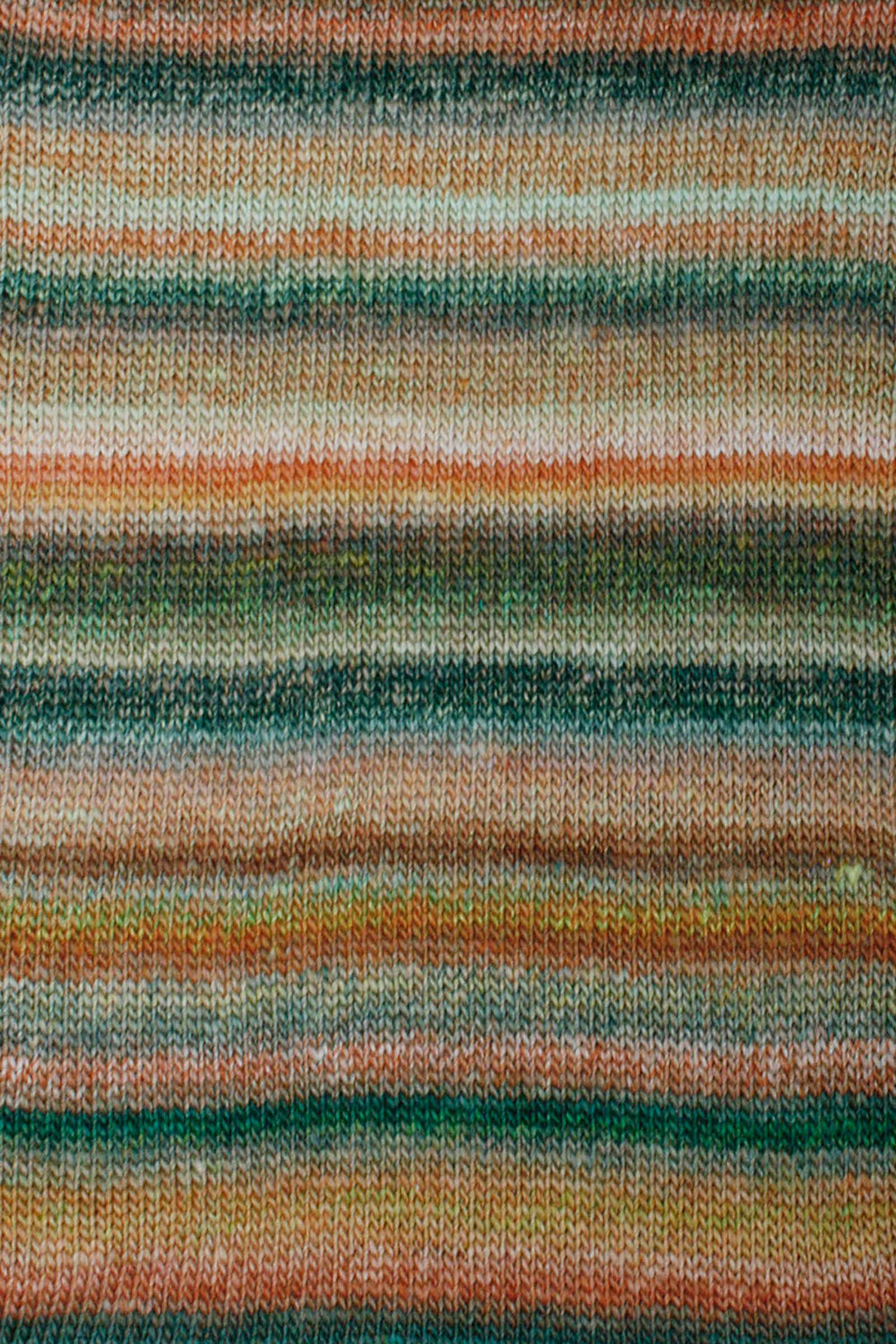 Frida van Lang Yarns is een in kleur verlopend, enkel gewikkeld garen van heerlijk zachte Merino extra fine wol. De ronde draad is soepel en geeft een regelmatig kleurrijk breiwerk.
