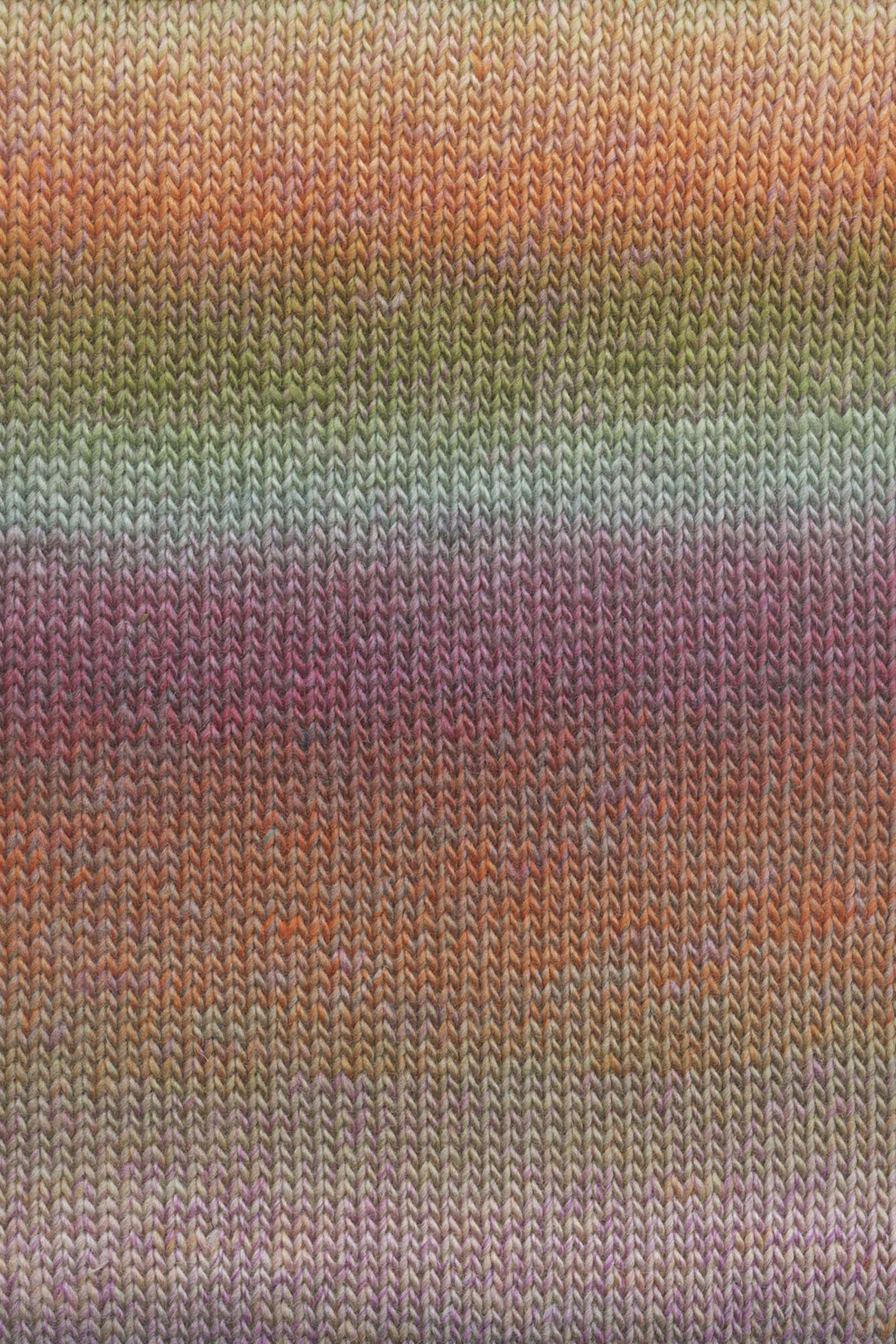 Frida van Lang Yarns is een in kleur verlopend, enkel gewikkeld garen van heerlijk zachte Merino extra fine wol. De ronde draad is soepel en geeft een regelmatig kleurrijk breiwerk.