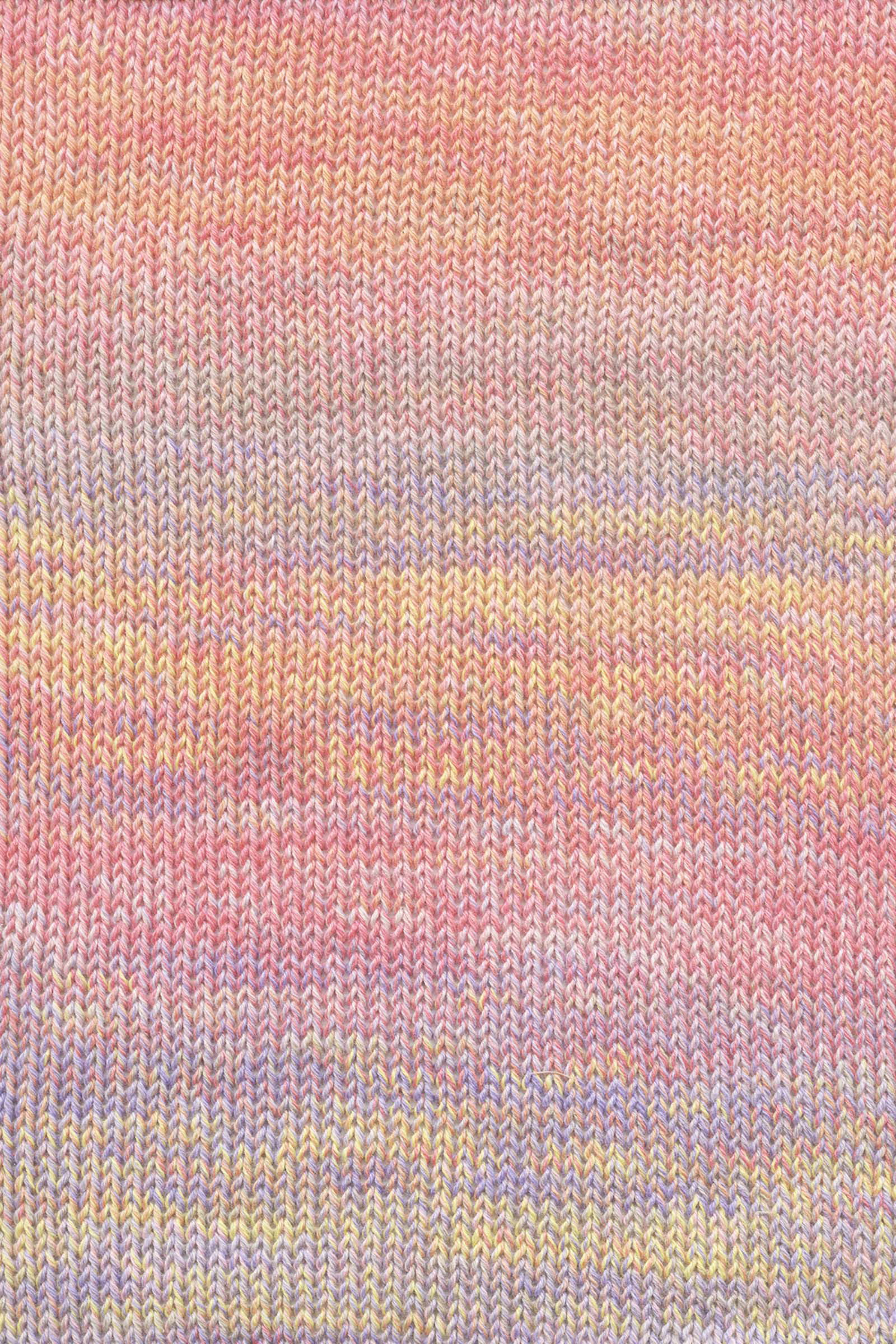 ILLUSION, een mix van katoen en bamboeviscose, valt op door zijn unieke kleurstelling. Elke draad wordt vóór het twijnen afzonderlijk bedrukt met dezelfde kleurverloop, wat zorgt voor voortdurend wisselende kleurcombinaties in het hele garen. Bij het breien of haken creëert deze mouliné-constructie een oppervlak met een gelijkmatige kleurverdeling, die een sprankelend, bijna hypnotiserend effect geeft dat doet denken aan een illusie of een fata morgana.