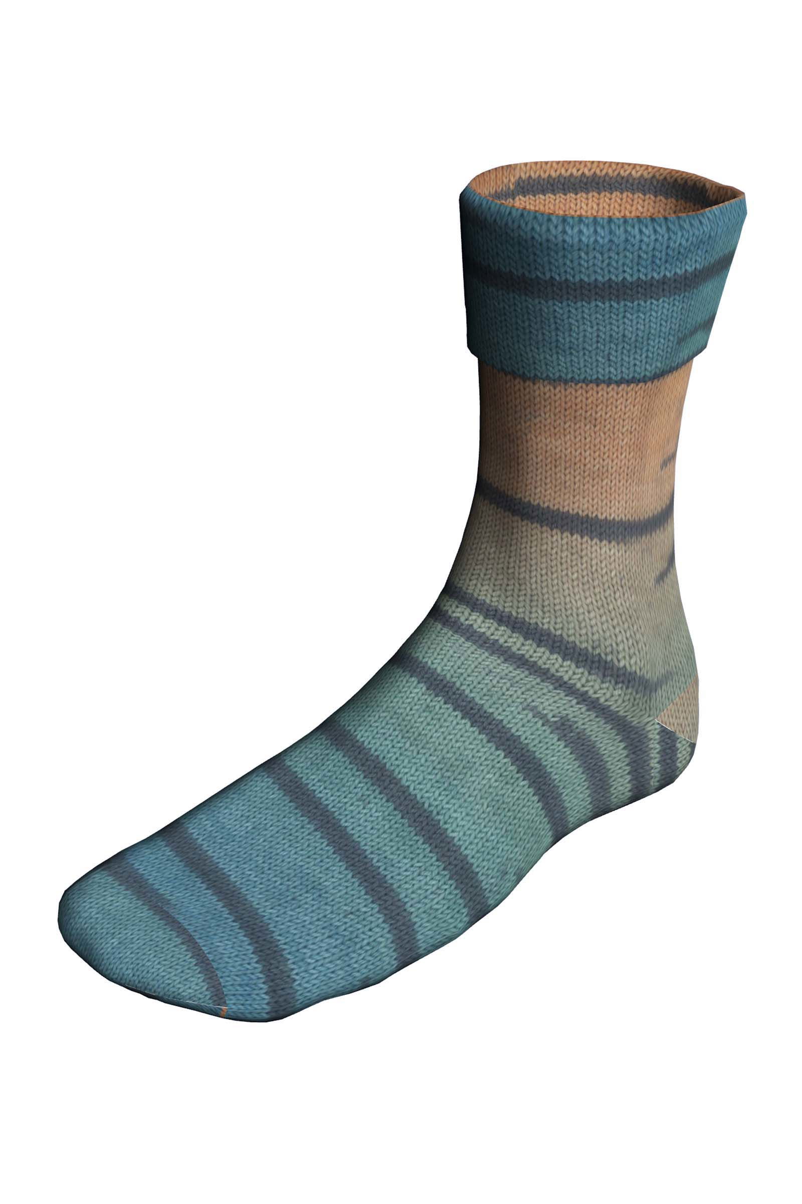 Lang Yarns Jawoll Twin 82 heeft op iedere bol hetzelfde kleurverloop. Met het garen zijn identieke sokken te breien.