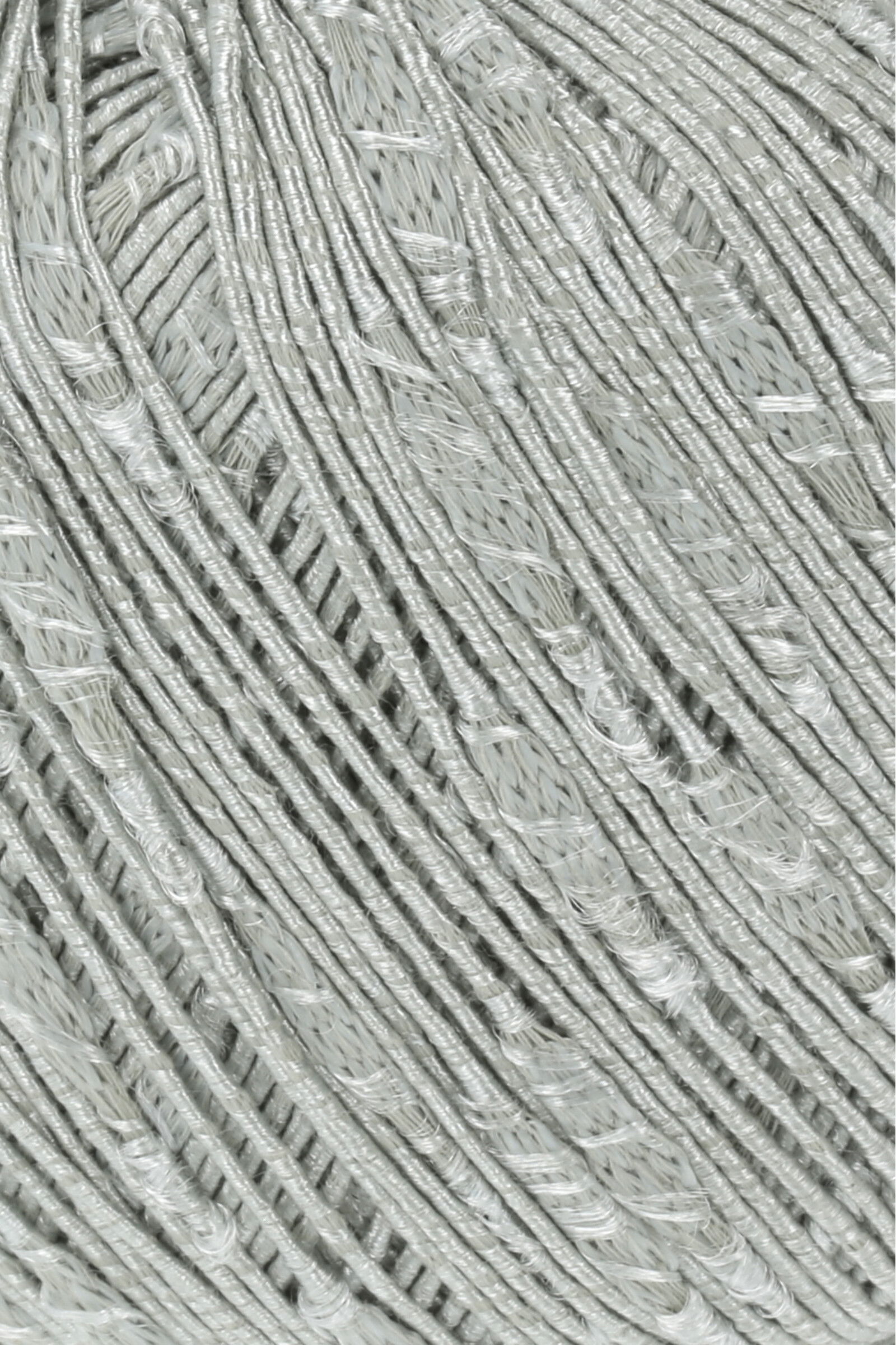 Lang Yarns Merlene is een dunne, glanzende draad met verspreid over de draad ronde, platte, verdikkingen van zo'n 8 mm.