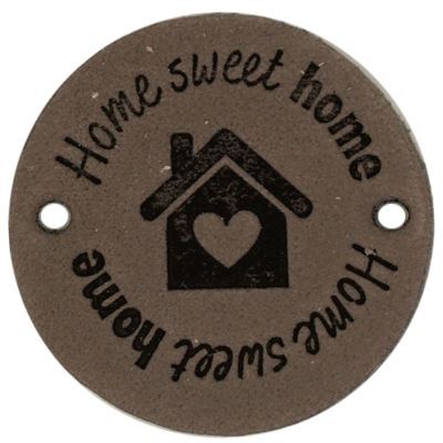 Leren Label rond - Home Sweet Home 03 bruin grijs 35 mm (2 stuks)