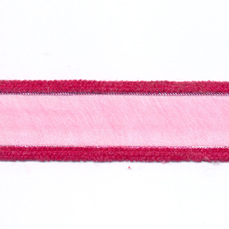 Lint 25 mm voile met fluweel roze (50 cm) (op=op)