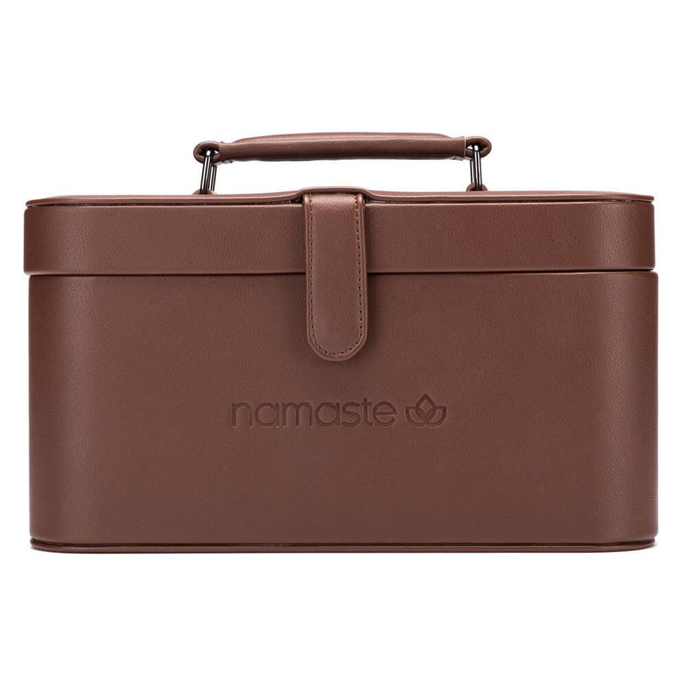 Deze vintage style Namaste Train case is speciaal ontworpen voor handwerkers die veel onderweg zijn. Dit bewust geproduceerde accessoire is gemaakt van veganistisch leer en met zijn praktische eigenschappen is het een must-have voor iedereen die graag tijdens het reizen handwerkt. De train case heeft een U-vormige uitsparing aan de zijkant, waardoor op een gemakkelijke manier het garen wordt toegevoerd. De magneten in de deksel functioneren als een handige opslag van spelden en naalden. Breien of haken tijdens het reizen was nog nooit zo handig, terwijl uw bezittingen veilig en stijlvol zijn opgeborgen! De Namaste Train case is verkrijgbaar in 4 trendy kleuren en meet 30,5 x 16,5 x 15,2cm.
