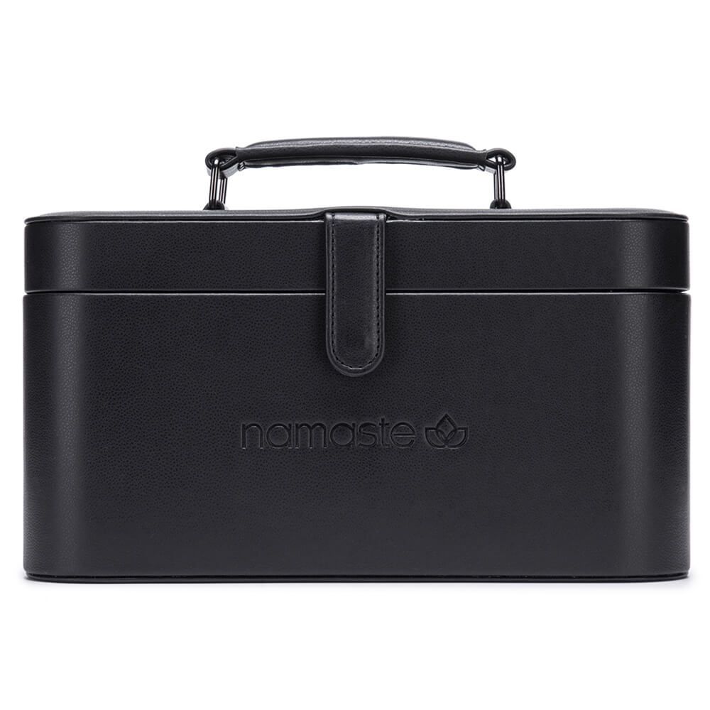 Deze vintage style Namaste Train case is speciaal ontworpen voor handwerkers die veel onderweg zijn. Dit bewust geproduceerde accessoire is gemaakt van veganistisch leer en met zijn praktische eigenschappen is het een must-have voor iedereen die graag tijdens het reizen handwerkt. De train case heeft een U-vormige uitsparing aan de zijkant, waardoor op een gemakkelijke manier het garen wordt toegevoerd. De magneten in de deksel functioneren als een handige opslag van spelden en naalden. Breien of haken tijdens het reizen was nog nooit zo handig, terwijl uw bezittingen veilig en stijlvol zijn opgeborgen! De Namaste Train case is verkrijgbaar in 4 trendy kleuren en meet 30,5 x 16,5 x 15,2cm.