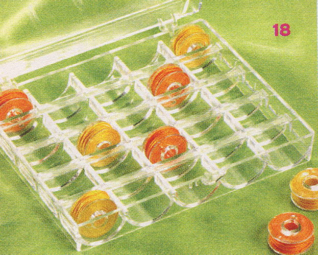 Altijd al gewenst meerdere spoeltjes te hebben voor diverse garen/kleuren. Het doosje is goed bevallen: doorschijnend, veel vakjes, spoeltjes zitten er goed in en worden ook makkelijk eruitgehaald.