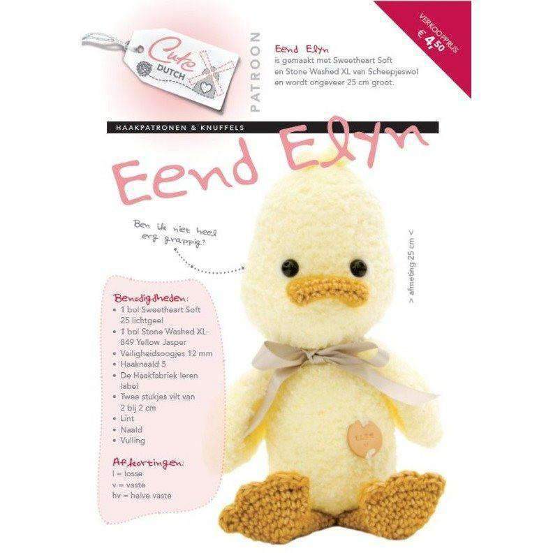 In het boek eend Elyn een haakpatroon van een knuffeldier in de vorm van een eendje van ca 25 cm groot.