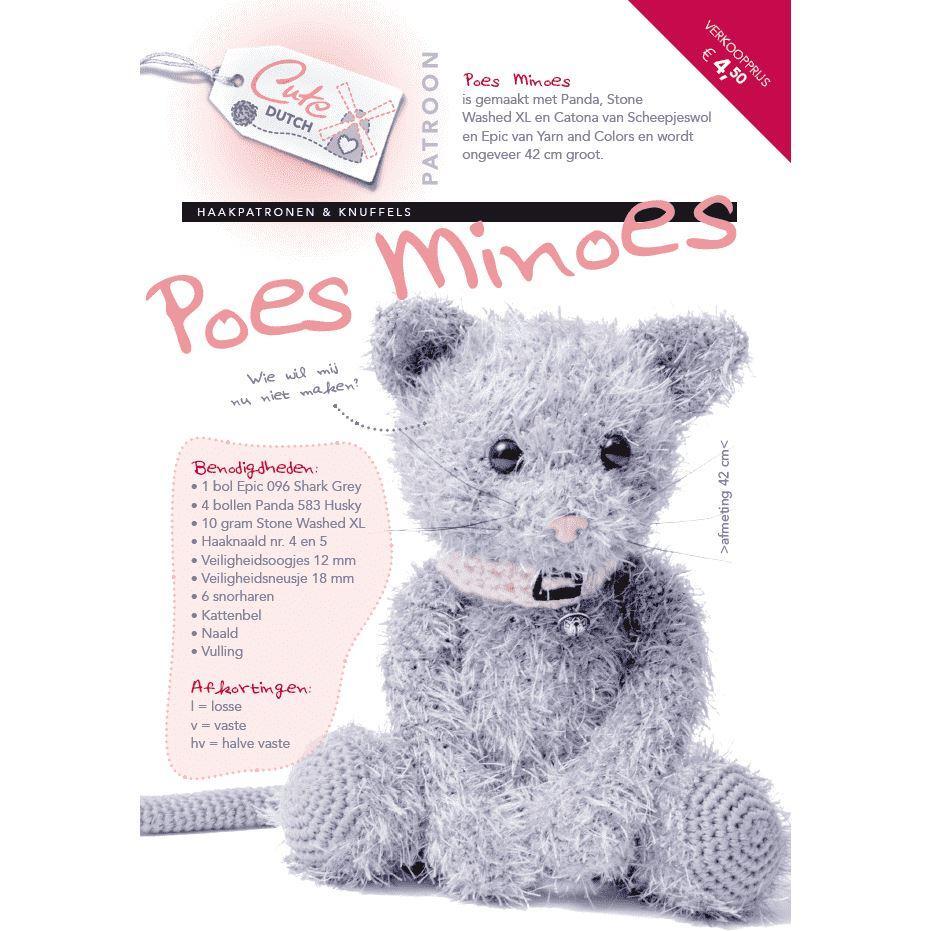 CuteDutch haakpatroon van Poes Minoes. Deze lieve poes is ca 42 cm groot, en is gemaakt van Scheepjes Panda, Scheepjes Stone Washed XL en DMC Natura Medium.