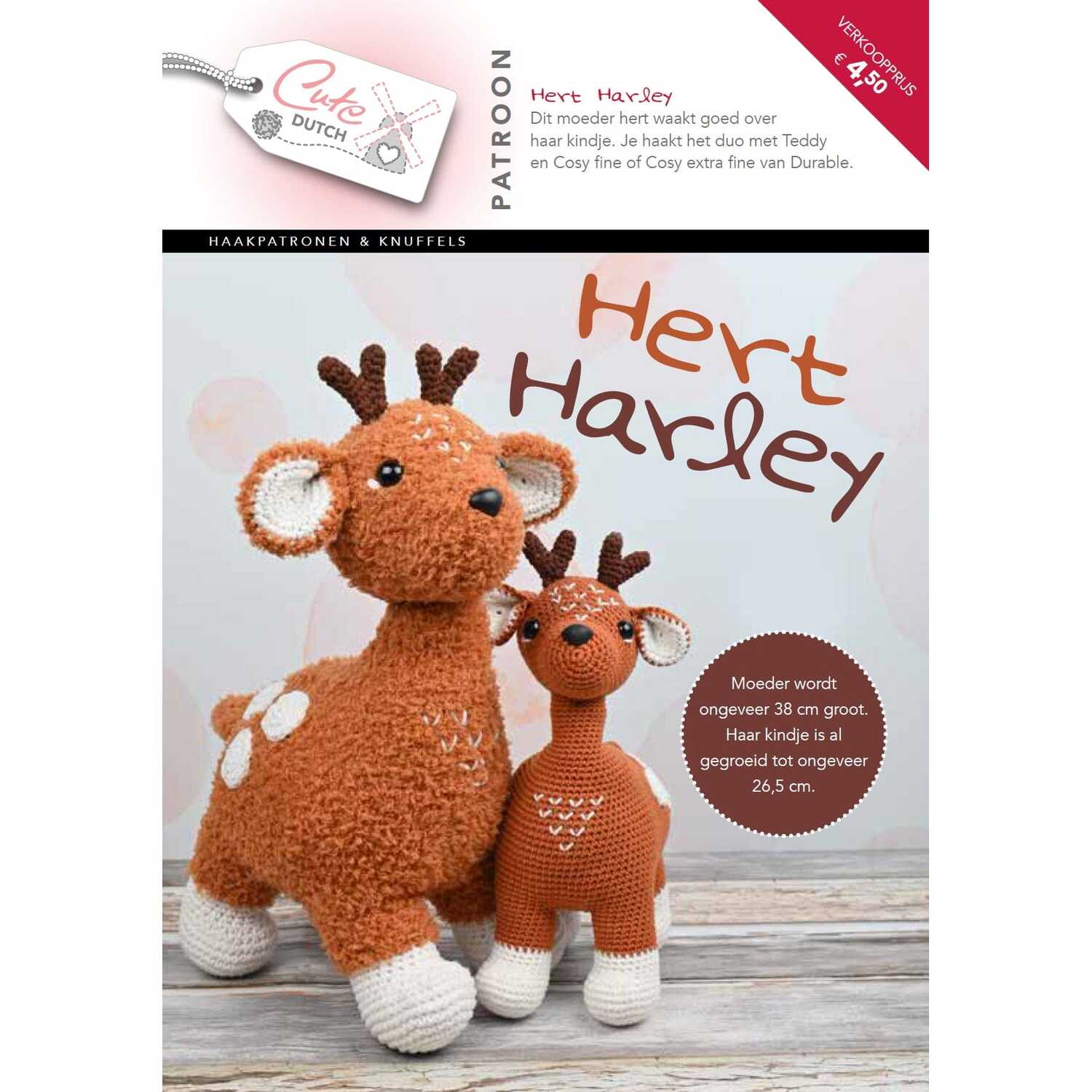 Haakpatroon Hert Harley, in het groot gehaakt van het garen Durable Teddy en klein van Durable Cosy extra fine.