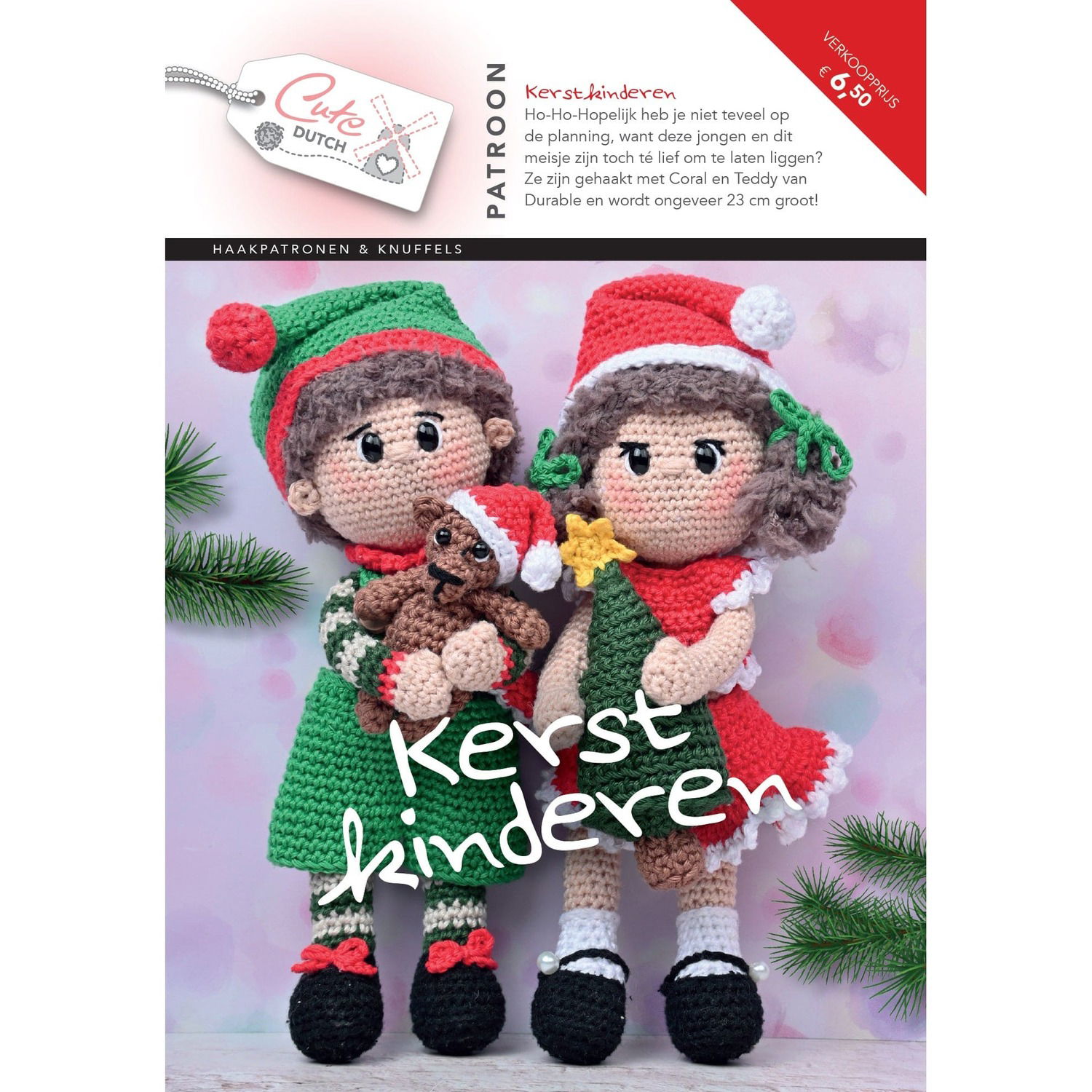 CuteDutch patroonboekje van twee lieve kerstkinderen. In het boekje staan haakpatronen van een jongenspop, meisjespop, kerstboom en kleine knuffelbeer. Allemaal in kerststijl! De poppen zijn circa 23 cm groot.