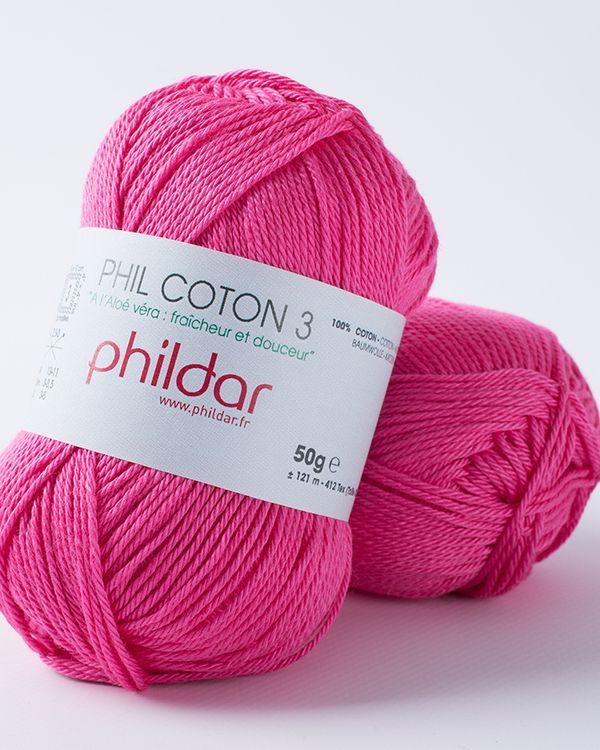 Phil coton 3 is een dun 100% katoene draad en is zowel geschikt om mee te breien als haken. Het katoengaren is verrijkt met aloë vera waardoor ze zachte aanvoelt ne een verzachtend en beschermend effect heeft op de huis.. Bovendien splijt Phil Coton 3 niet tijdens het haken, dit voorkomt het insteken van de naald in de draad. Kortom, als je op zoek bent naar een katoen dat heerlijk haakt en verkrijgbaar is in tientallen prachtige kleuren, dan is dit de ideale match! Ieder seizoen komt Phildar weer met superleuke nieuwe patronen voor dit garen.