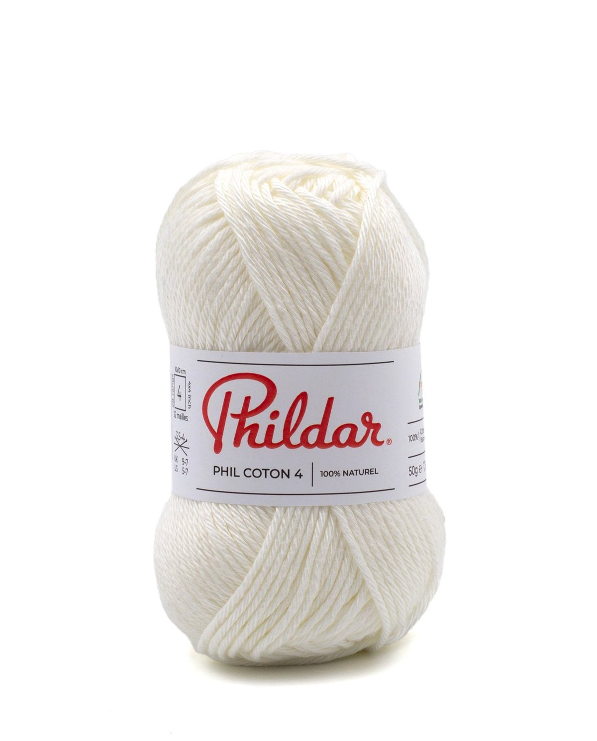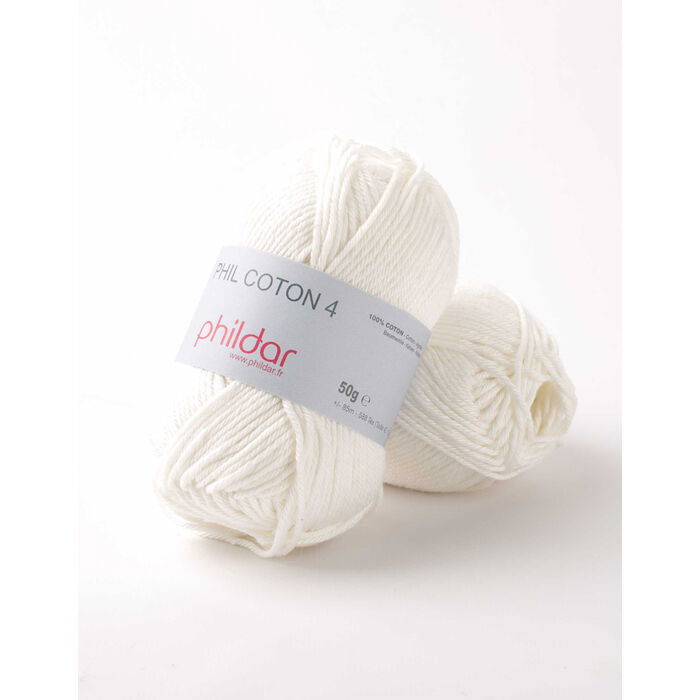Phildar Phil Coton 4 is een zeer populair garen van 100% katoen. Het garen is verrijkt met aloë vera, wat een verzachtend en beschermend effect geeft. De kleuren van Phil Coton 4 komen overeen met Phil Coton 3, alleen is dit garen dikker. Phildar Phil Coton 4 is het ideale garen voor het haken van bijvoorbeeld knuffels, truien en home-deco.