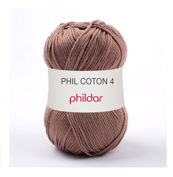 Phildar Phil Coton 4 is een zeer populair garen van 100% katoen. Het garen is verrijkt met aloë vera, wat een verzachtend en beschermend effect geeft. De kleuren van Phil Coton 4 komen overeen met Phil Coton 3, alleen is dit garen dikker. Phildar Phil Coton 4 is het ideale garen voor het haken van bijvoorbeeld knuffels, truien en home-deco.